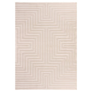 Dit opvallende vloerkleed met zijn gedurfde, geometrische lijnen voegt direct een dosis moderne kunst toe aan uw interieur. Het subtiele spel van licht en schaduw in het design creëert een dynamisch effect, waardoor dit kleed een ware eyecatcher in elke ruimte is.