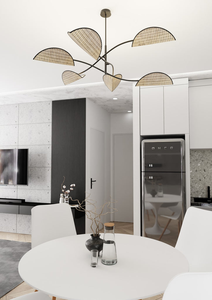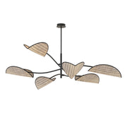 De LOTUS plafondlamp in warme naturel tinten is perfect voor grotere ruimtes waar sfeer en natuurlijke elegantie centraal staan. De zes bladvormige lampenkappen verspreiden een zacht, warm en uitnodigend licht. Dankzij het etno-geïnspireerde ontwerp past deze lamp prachtig in boho-, Scandinavische en moderne interieurs.