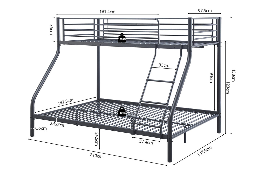 Stapelbed 'Trio' metaal140/90x200 Donkergrijs